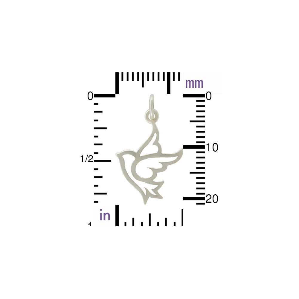 Sterling Silver Peace Dove Bird Charm. With her head held high and her wings spread wide, this little peace dove is ready to soar. May peace take flight! Shop the Peace Collection.