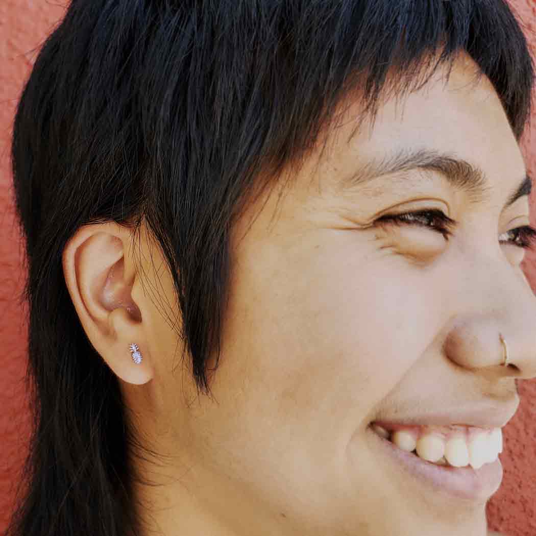 These sterling silver pineapple post earrings are too sweet for words! Pineapples are heralded as the princess of fruits, and as a universal symbol of welcome. Giving the pineapple as a gift conveys your intention to promote friendliness and graciousness to those arriving. Add a tropical twist to your day when you put on these super cute pineapple post earrings!
