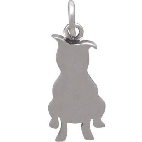 Sterling Silver Pitbull Dog Charm. This layered dog charm showcases the friendly, dependable nature of bull dogs, highlighting it's lovable smile. This little pit bull charm is ready to play!