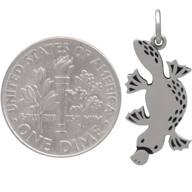 Wear this sterling silver platypus charm as a dare for you to be you with no inhibitions. The platypus - part duck, part beaver, and part otter - is one of nature's most unlikely creatures. In fact, it's so strange that the first scientists to see a platypus thought it was a hoax. If this creature speaks to you or comes to you in dreams, it's letting you know that no matter what other's think, you must always express who you are without hesitation or apology.