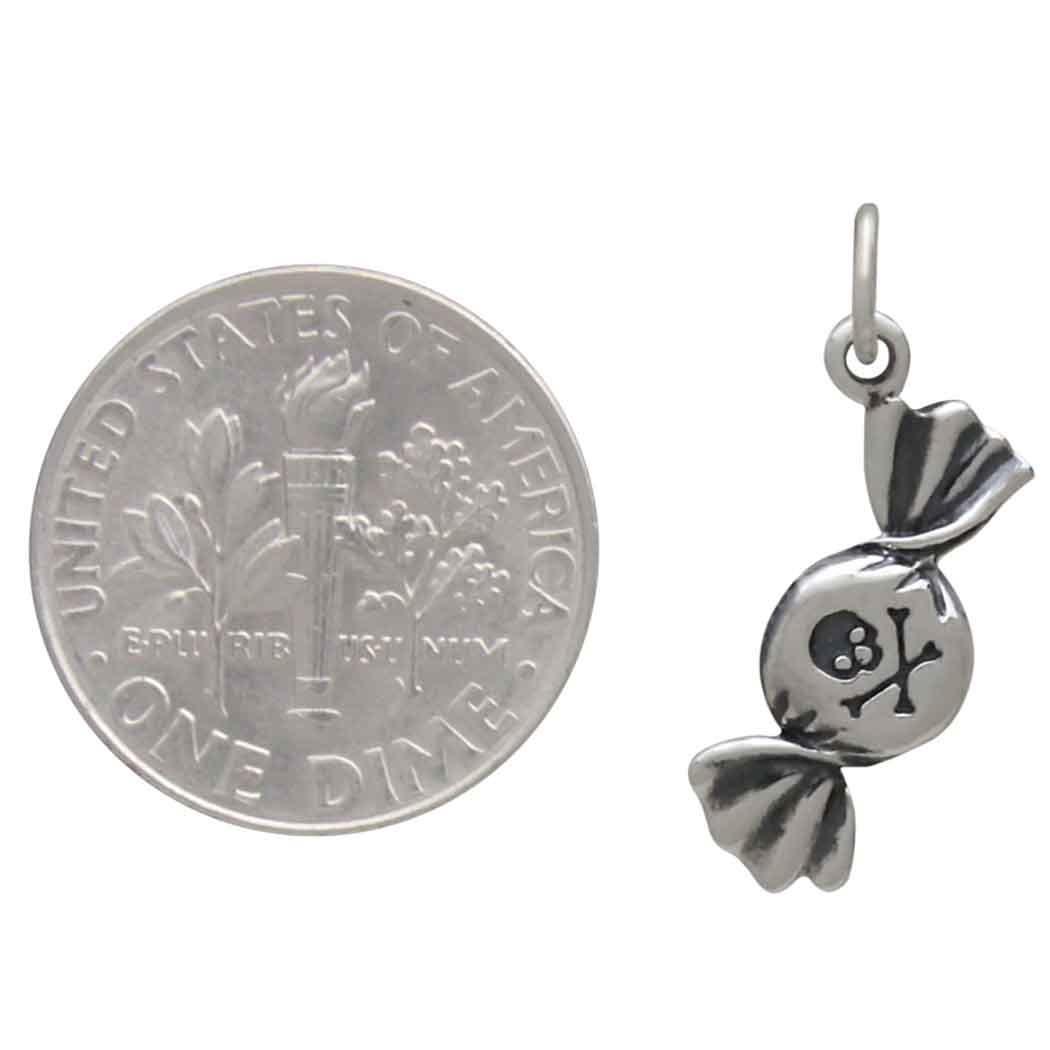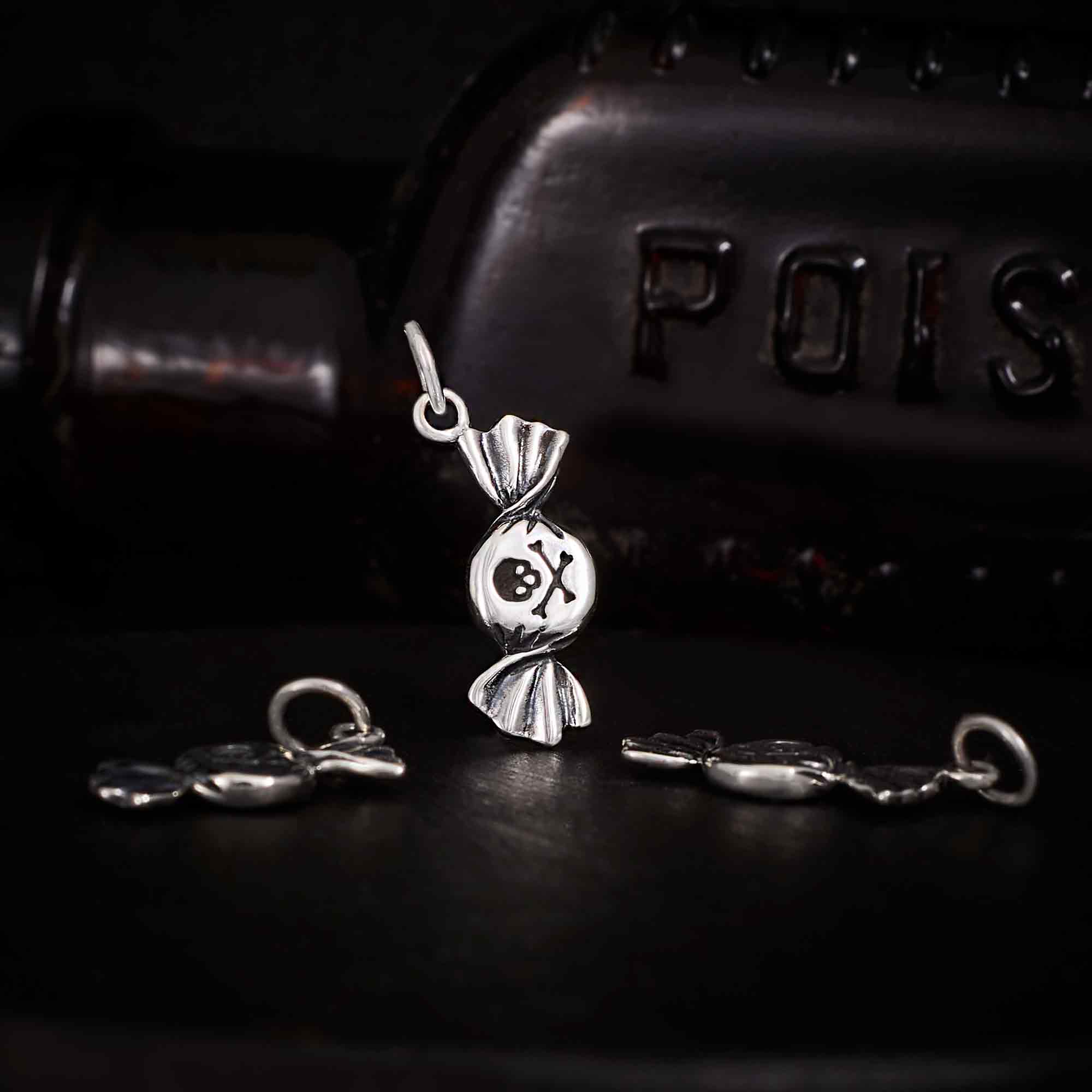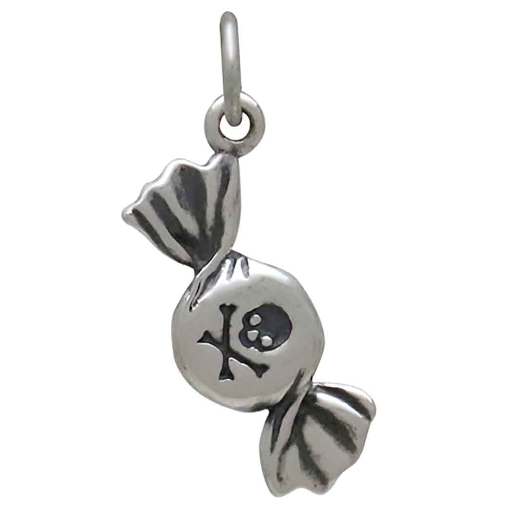 The oxidized detailing enhances the eerie design, making the skull and candy wrapper pop with striking contrast. A playful yet edgy addition to charm bracelets and necklaces, this piece is ideal for lovers of Halloween, gothic fashion, or anyone with a sweet but deadly sense of style. Find more Talisman Charms and Halloween Charms.