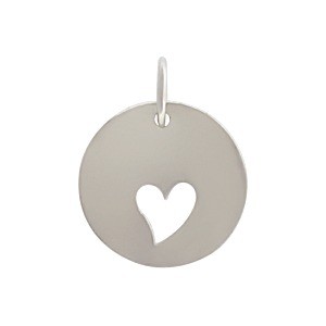 This no frills, basic sterling silver round charm features one heart cutout. Perfect for dangling pink and red gemstones from the heart to make a necklace focal point, or simple earrings. Pair with any of our sterling silver finished chains! Find more Heart Charms- stock up for Valentines, wedding season, and Mother's Day.