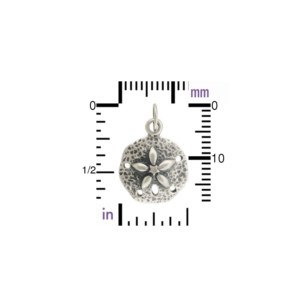 Sterling Silver Sand Dollar Charm. In many island cultures, sand dollars are considered to be mystical creatures resembling a living Mandala. Each delicate sand dollar carries its own distinctive pattern resembling little leaves with branching veins all connecting to a center point. And, according to legend when sand dollars break open, five white doves are released to spread good will and peace across the universe.
