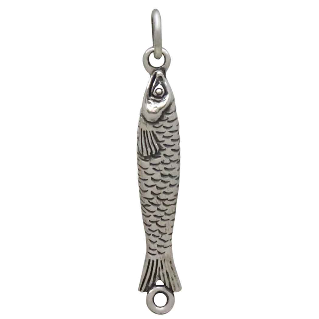 Playful and unique, this sterling silver sardine link is a charming nod to coastal living and vintage sardine-tin art. Measuring 32x5mm, it’s the perfect size for creating whimsical earrings, ocean-inspired necklaces, or as a connector in charm bracelets.
