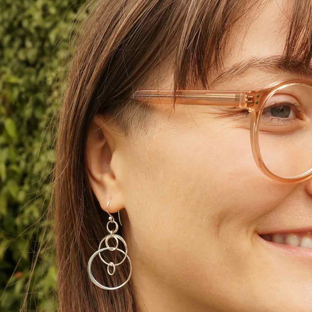 Six circles floating in space make up this sterling silver floating circles earring. It's fabulously lightweight & magical, and the way it moves sparks joy!