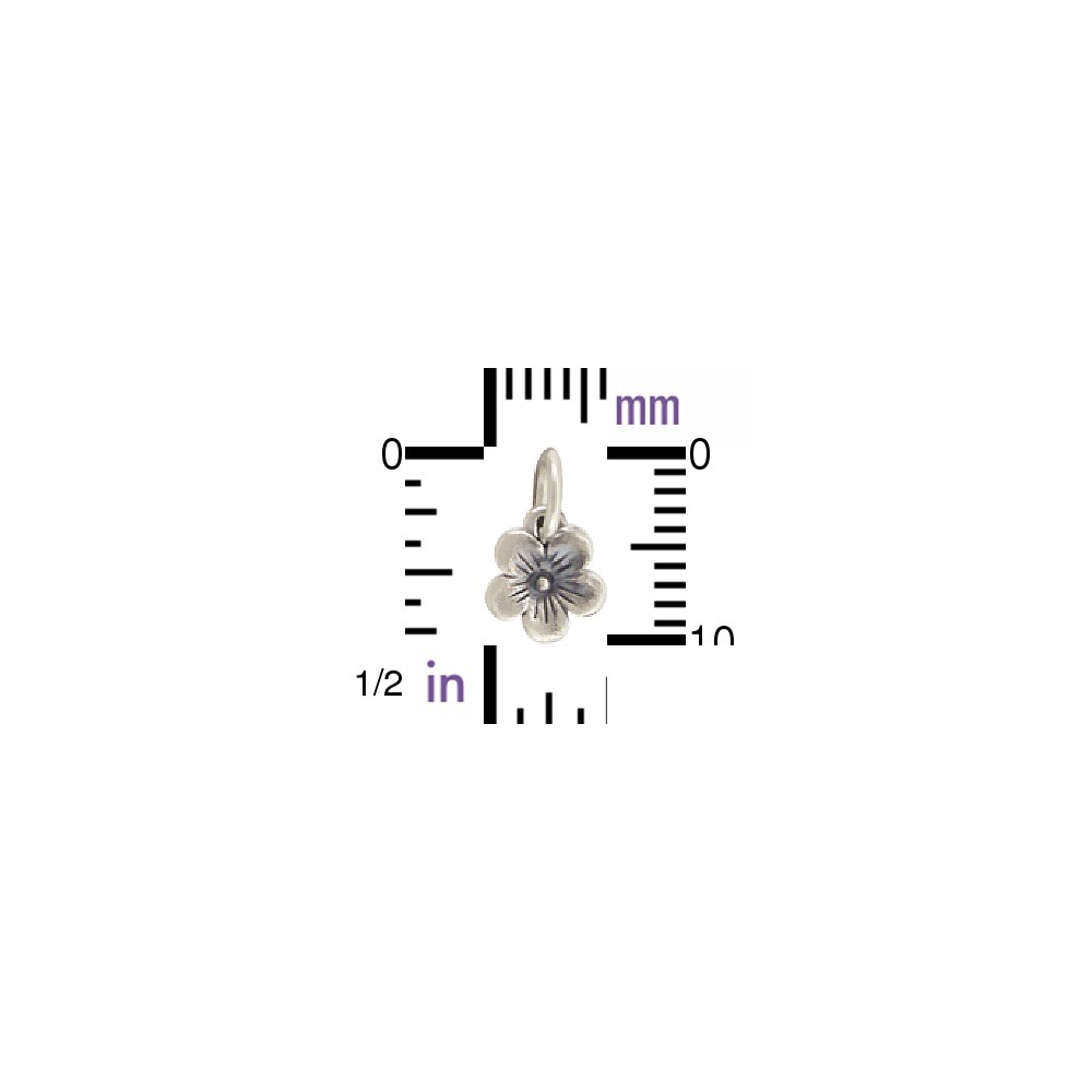 Small sterling silver cherry blossom charm. For thousands of years, cherry blossoms have been held in the highest esteem in Japan and China. Many artists have immortalized the cherry blossom in paintings, poetry, and embroidery. Because the blossoms last for only a short time each year, they're thought to reflect the fleeting nature of life that imbues it with a fragile beauty.