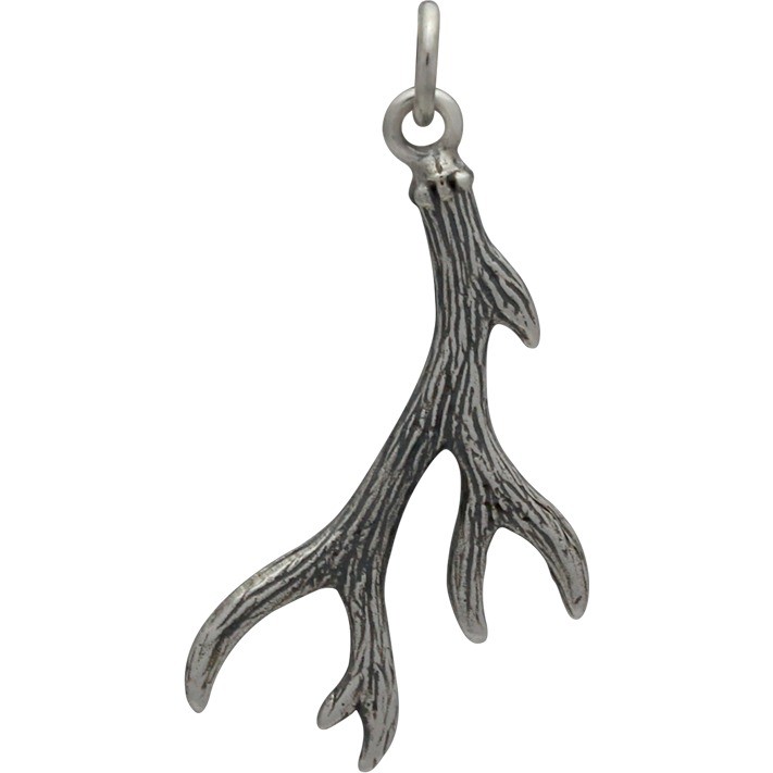 Small Sterling Silver Deer Antler Pendant. Deer are very perceptive beings, and are known for their grace and gentleness. Because of their nature, their antlers have come to symbolize deep awareness. Antlers are like spiritual antennae, directing your energy and inner thoughts towards higher pursuits and goals. This antler charm has both a front and back, giving it great symmetry for earring designs. Makes a beautiful, small talisman pendant as well.