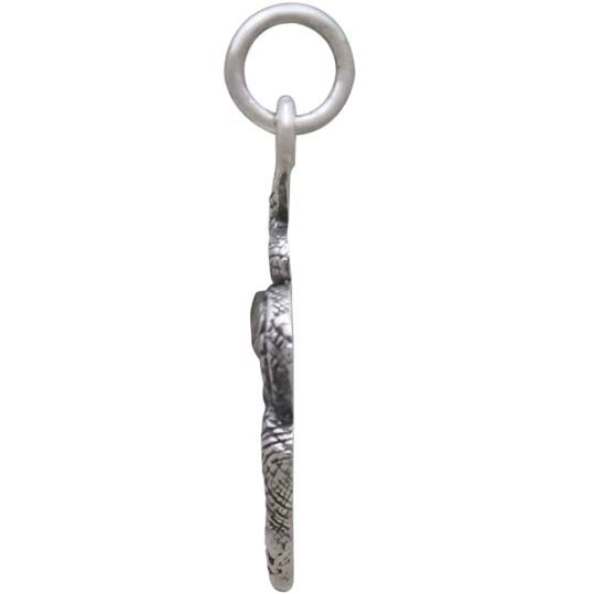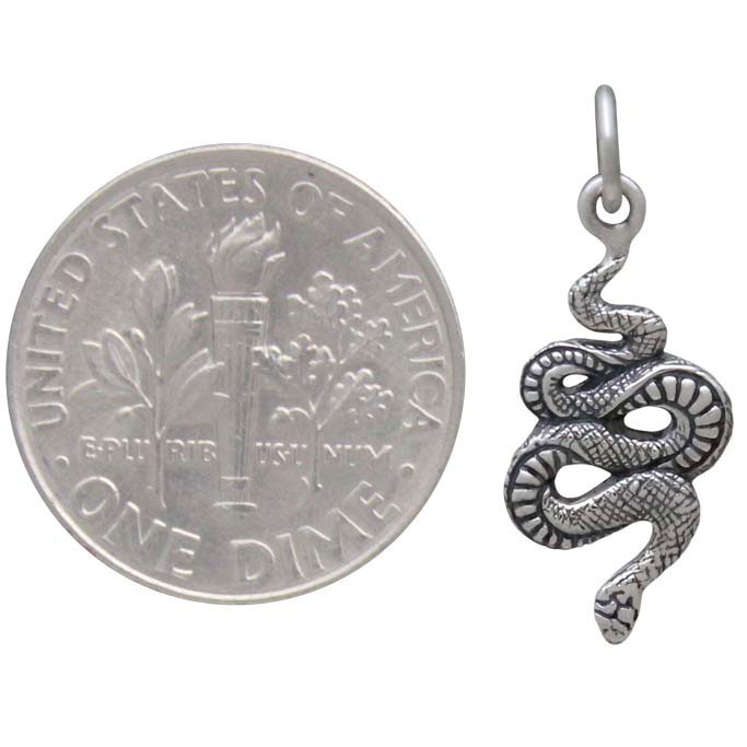 Let this sterling silver small snake charm slither its way into your jewelry designs. Tiny enough to be used in multiples along the length of a necklace, and light enough to be focal points on serpent earrings, this snake charm will add instant Gothic appeal to your jewelry line. Frame this dark beauty with jewelry links of different shapes and finishes for contrast and drama. Snakes are beguiling creatures saturated with symbolic meaning. Because they shed their skin & move so quickly, they've come to signify rebirth, transformation, duality, and thought of as protectors of the shadow realms & portals between worlds.