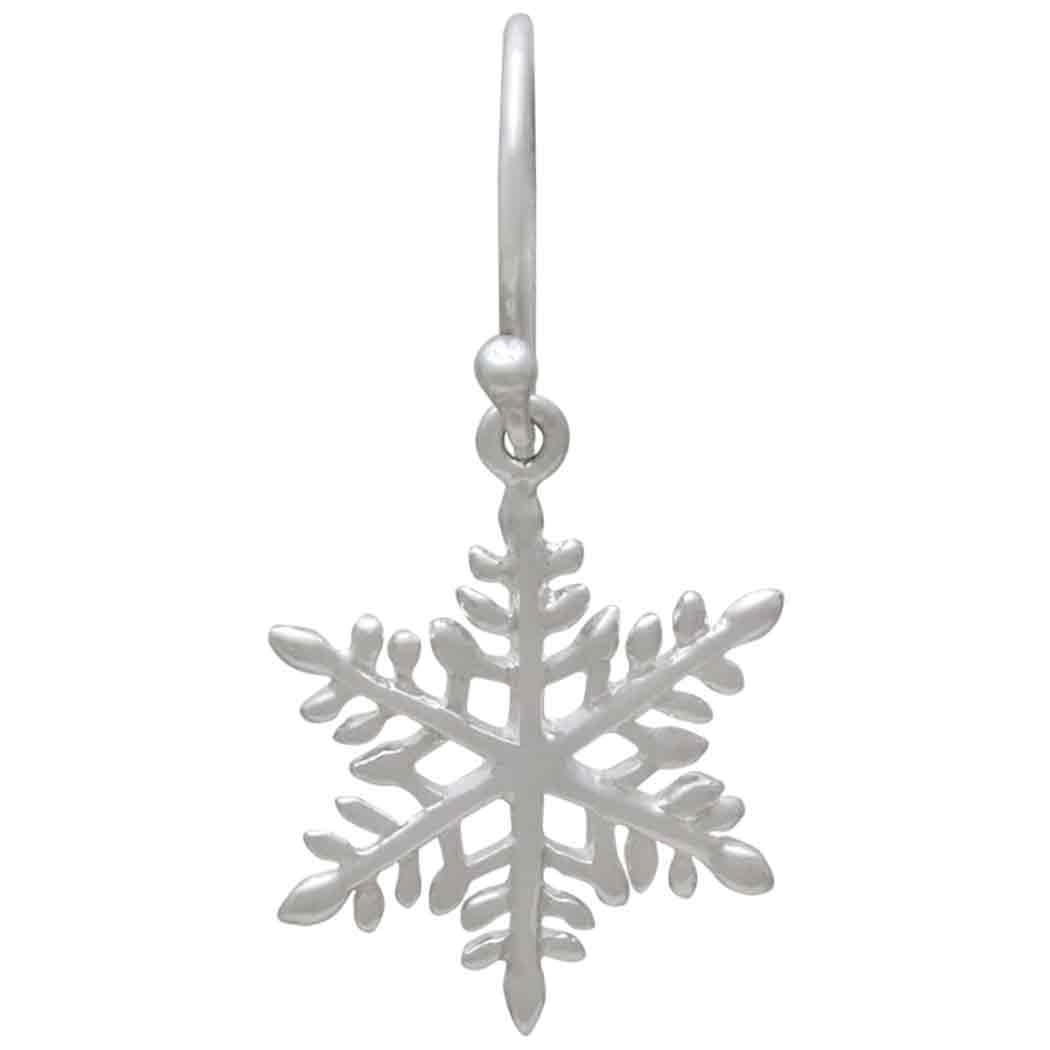 These sterling silver snowflake dangle earrings remind us of the beauty of falling snow, a magical event binding heaven and earth. Tiny ice crystals fall from the sky as snowflakes form around a nucleus of earth-born dust. The geometric perfection of snowflakes has won it many admirers. As if by some cosmic decree, every snowflake has six sides. Because the number six is associated with affection, the snowflake was used by Pagans as a symbol of love.