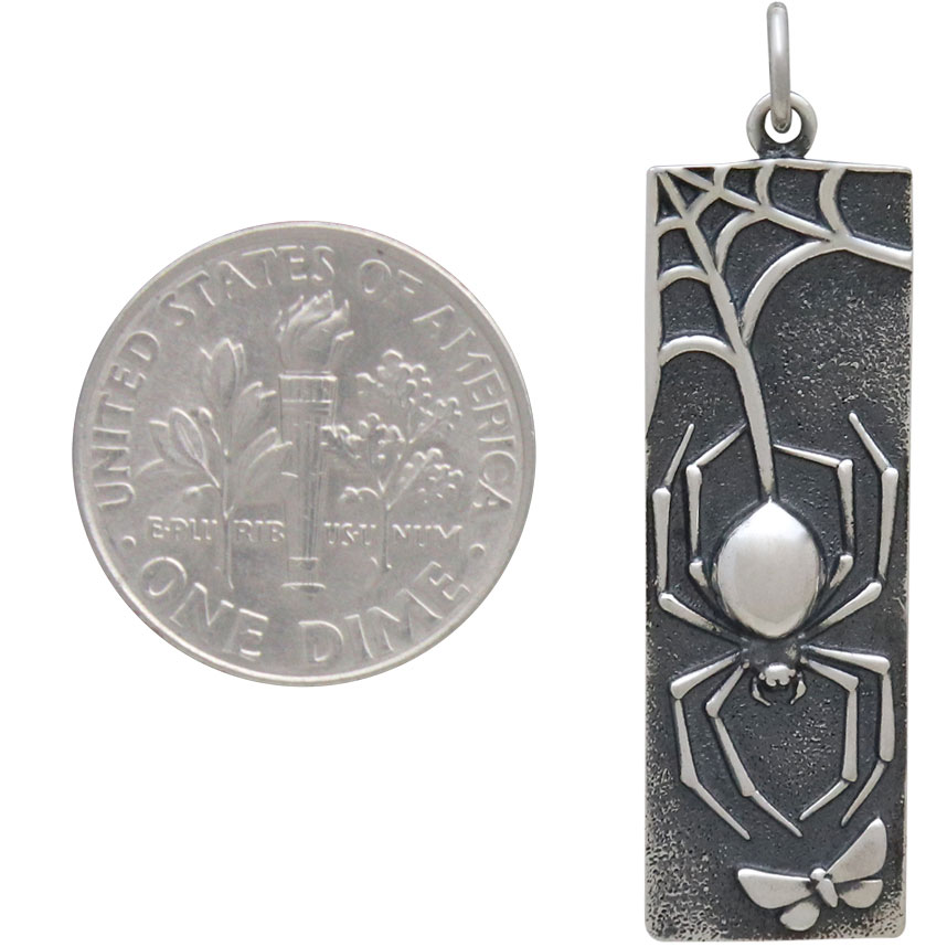 Market these sterling silver spider pendants on rectangle to customers who draw on the energy of spiders. Spiders are eerie creatures considered to wield supernatural qualities. Their ability to weave intricate webs proves they have patience, strength, and a touch of magic. Though some may be afraid, these interesting insects would rather keep to themselves and create mini works of art.