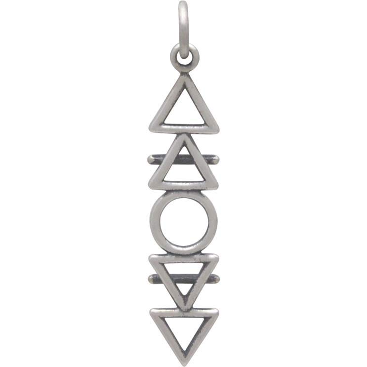 In this sterling silver stacked elements charm you can honor all four elements, all four four seasons & directions, at once. From top to bottom appear the elements - fire, air, water and earth. In the middle is placed an open circle to symbolize the spirit that animates the four elements. With this one charm, you can channel your intuition, perception, stability, and passions.