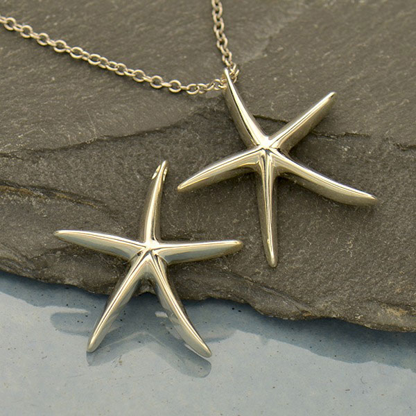 Sterling Silver Starfish Bead - Starfish Pendant. Complete your Summer Jewelry Look with this fun Starfish Charm! This Starfish Pendant features a "hidden" hole at the top that measures 1.85 mm in diameter, perfect for sliding onto a chain. Starfish come in all shapes, sizes, and colors, decorating rocks in tide pools, and coral on the ocean floor. According to legends, starfish are some of the stars that fell from the sky into the oceans. Symbolizing equality and rebirth, starfish have a remarkable ability for regeneration. If a starfish is cut in half, two starfish will grow. Create jewelry with starfish beads around Summer, and the vacation seasons.