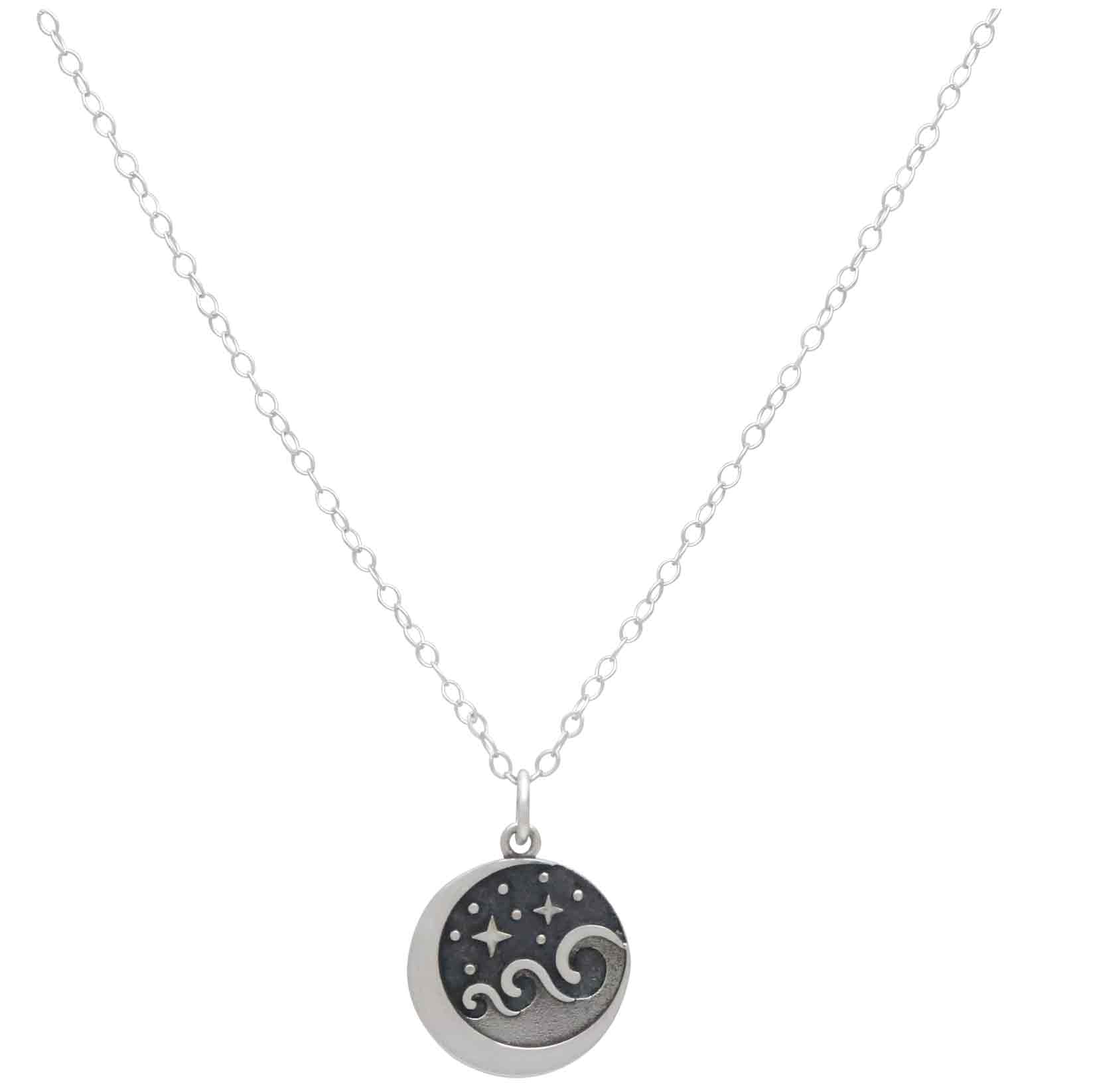 This sterling silver starry night wave necklace delivers on drama and serenity. Those inclined to night swims in gentle seas and oceans, and those who enjoy watching the stars will be thrilled to find this starry night charm in your shop.