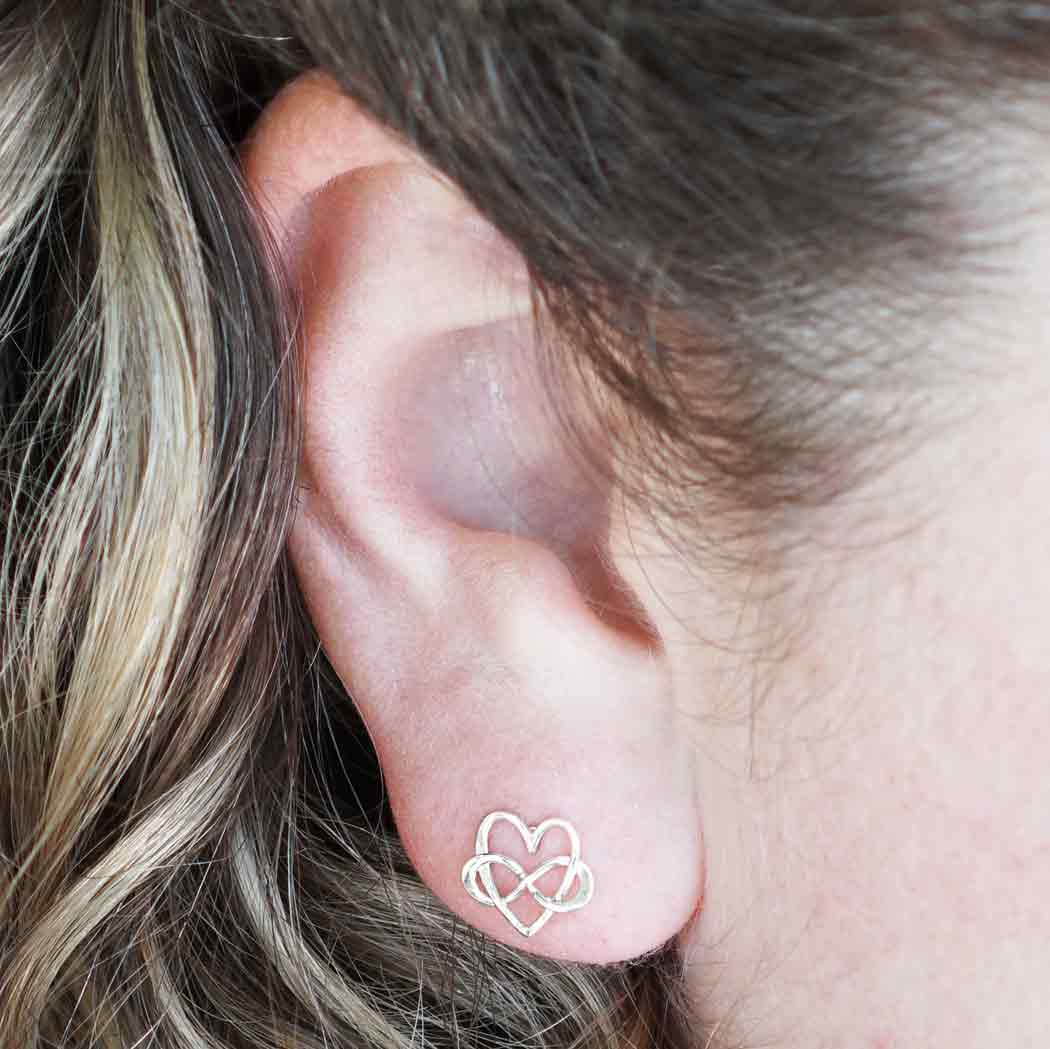 Sterling Silver Infinity Heart Post Earring. These ready to wear post earrings are a classic shape, romantic, flirty, and fun. These tiny open infinity heart earrings are the perfect gift for Friends, Family and Bridesmaids! Add a sweet finishing touch to your look with this simple, ready to wear pair, or, use the openwork design to embellish with dangles or gemstones!