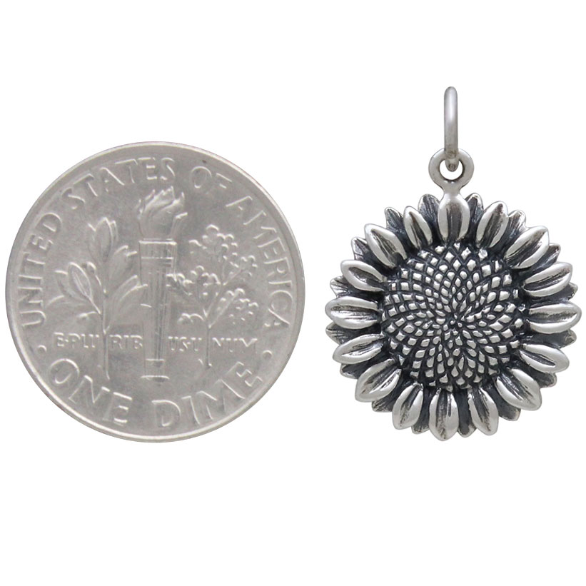 Bestow good vibes and optimism upon your customers when you offer this wonderfully detailed sterling silver sunflower charm in your shop. Sunflowers are top of the list for many avid gardeners, painters, and flower enthusiasts. There's no other flower that uplifts your mood, and symbolizes loyalty and friendship better than the sunflower.