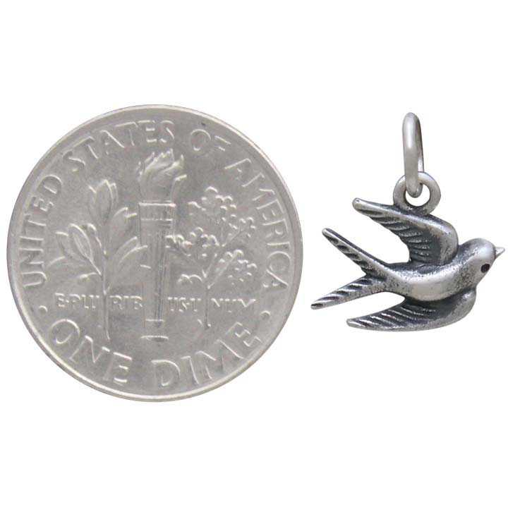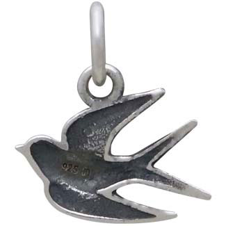 Expansive and soaring mid flight, this sterling silver swallow charm is poetry in motion. With her wings spread wide, this little swallow will thrill the bird lovers in your life. The design features fine lines to highlight movement & feathers.