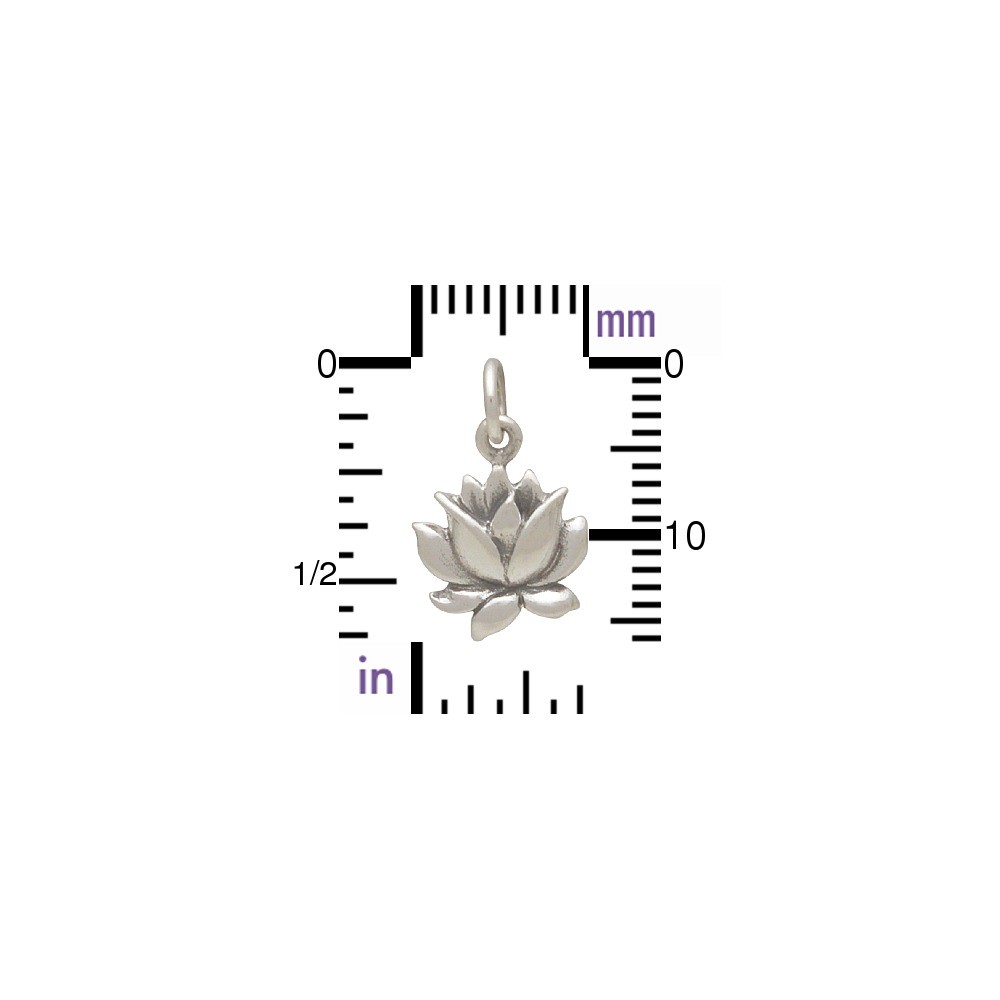 Medium Sterling Silver Textured Blooming Lotus Charm. This lotus flower charm features an oxidized finish for a dramatic look which is sure to add elegance to your jewelry designs. Its full, unfolding petals suggest the expansion of the soul. Because its pure beauty remains unstained when growing from the mud of its origin, it represents a sage and spiritually enlightened person. While the lotus flower has spiritual symbolism amongst many cultures, its beauty and grace is undeniable by all. Browse and shop more of our lotus collection!