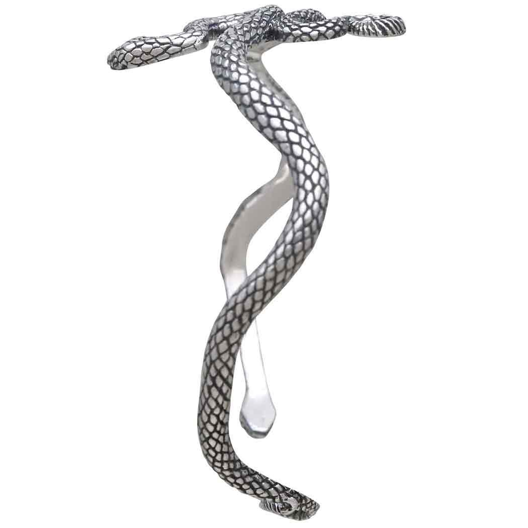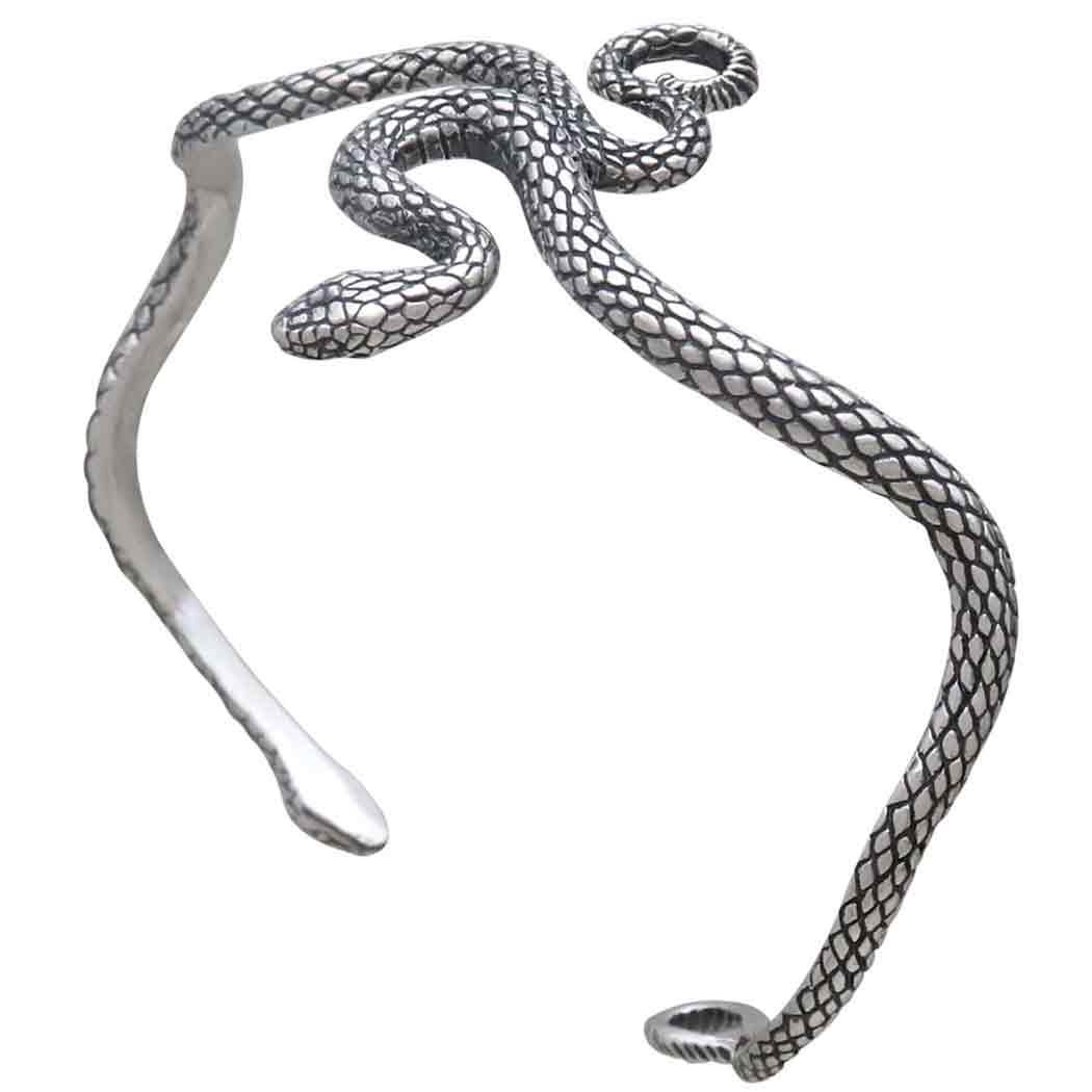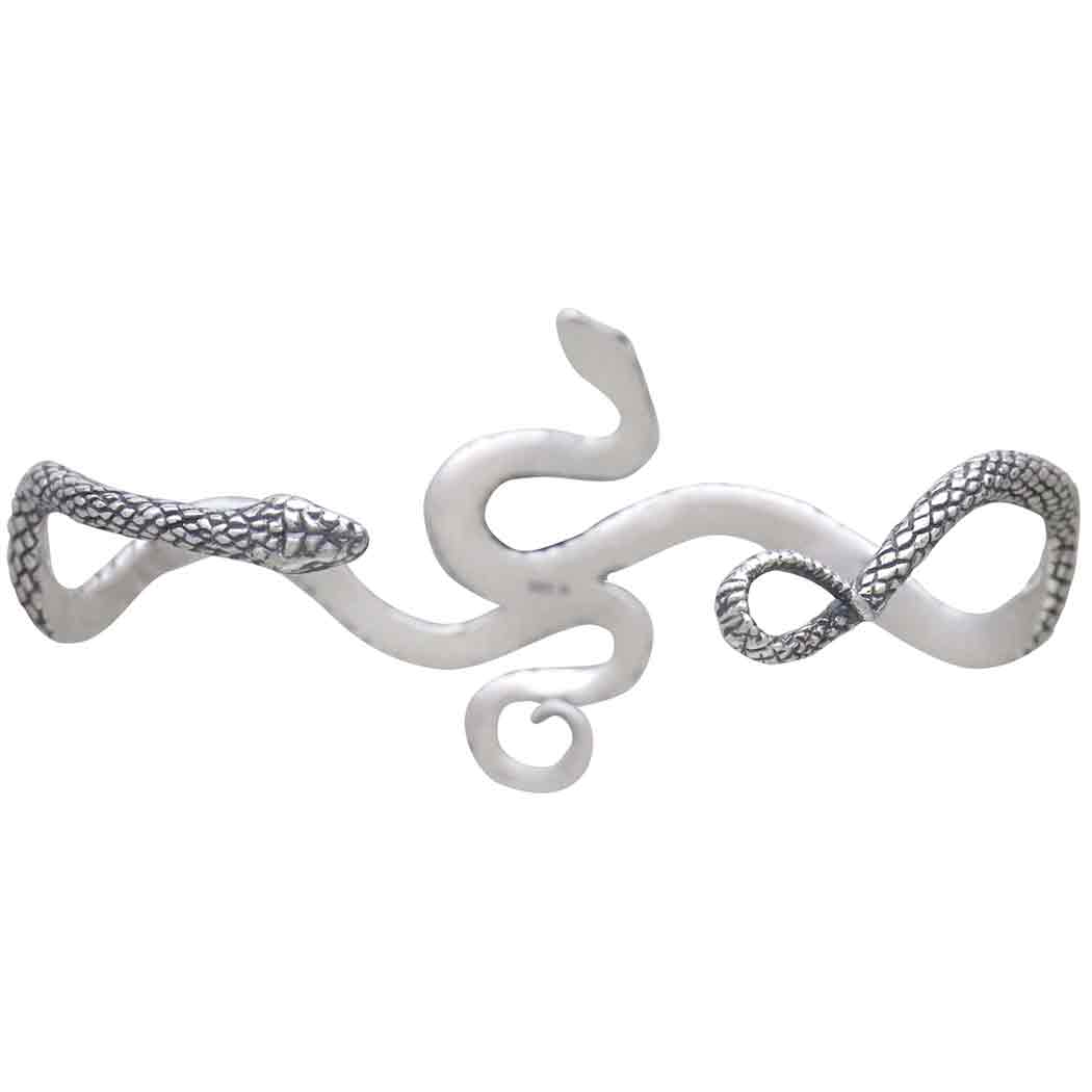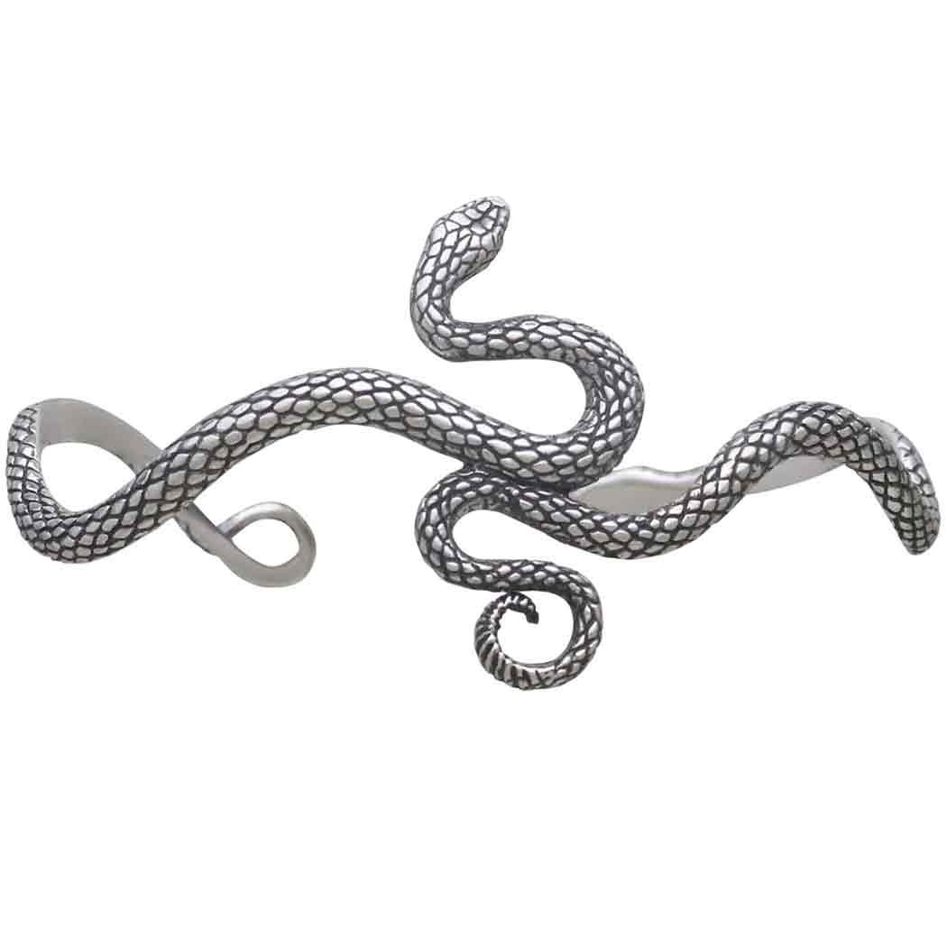 Two serpents come together as one in this sterling silver textured snake bracelet. Coiled into hypnotic waves and rendered with lifelike texture, these dark beauties are mesmerizing. Ever the opportunists, snakes are prized for their stealth, as they move in the shadow realms just waiting for the perfect moment to strike. Channel your inner serpent when you don this textured snake cuff bracelet. Find more Bracelets to stock in your shop.