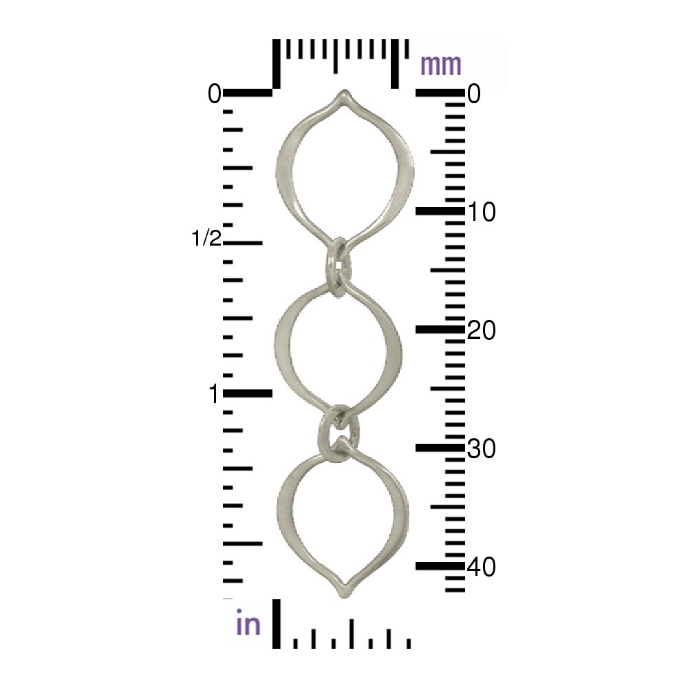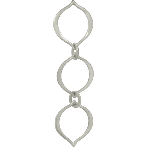 Sterling Silver Arabesque Segmented Link. This lovely design incorporates three small arabesques linked together by two small circles. With the evenness of this design, the ability to add on becomes apparent. Use on earrings and as links on necklaces. Even wire wrap gems inside the arabesques for added flashes of color! Or, browse our Links for other pieces to add to this.