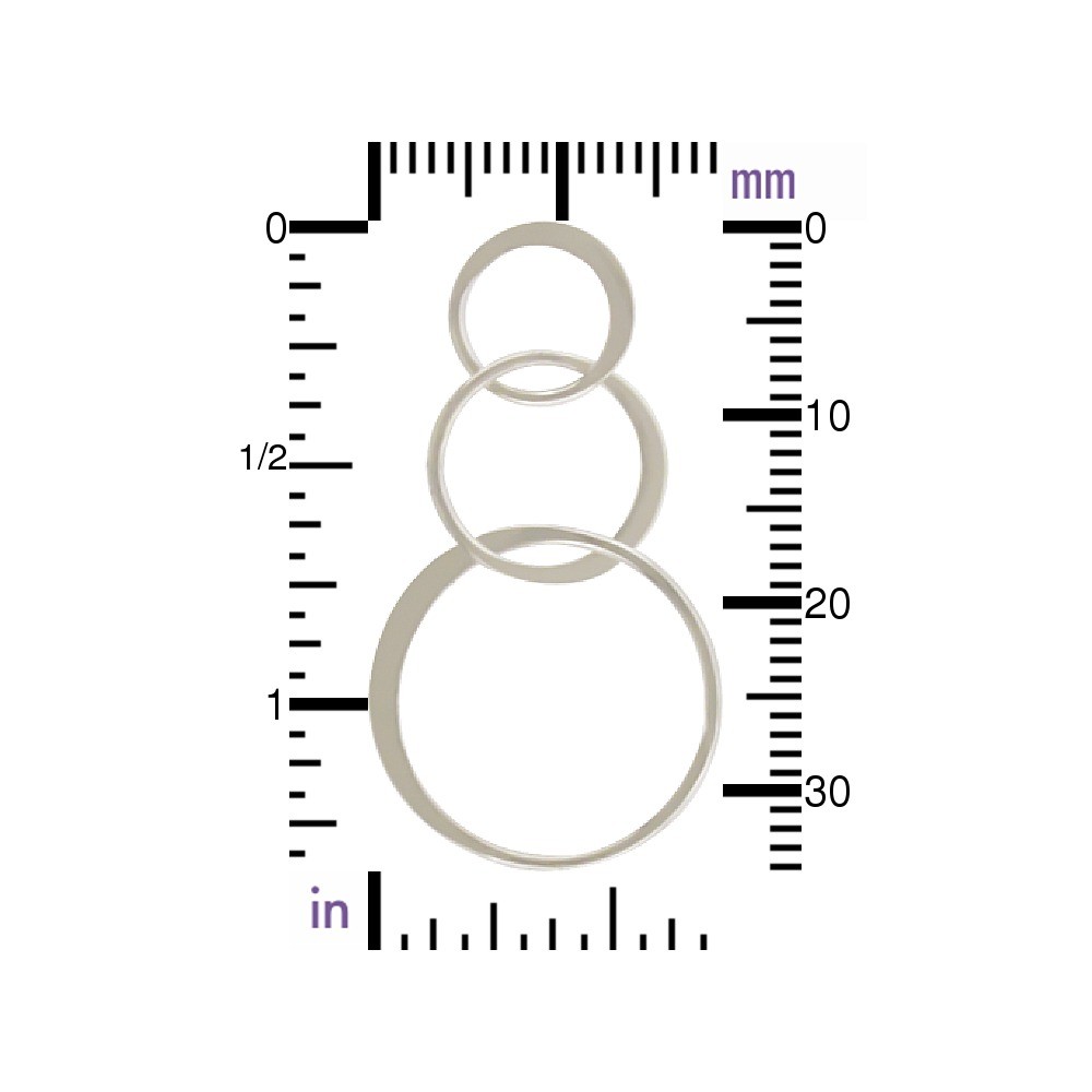 Sterling Silver Three Circle Link. Gorgeous handmade link made of three graduated circles in a small to large pattern. Part of each circle is made of round wire, other part is flattened wire. A bold style without the weight.
