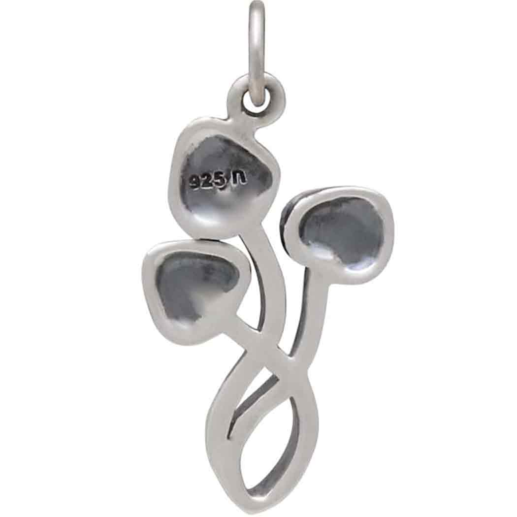 This sterling silver three mushroom charm will transport you to a far away fairy tale world where anything can happen. The details are truly delightful. Makes a great gift for avid readers, and imaginative creatives in your customer base. This mushroom charm has a loop at the bottom that's perfect for attaching whatever you can dream up - flourishes of colorful beads, more charms, or a single magnificent briolette bead.