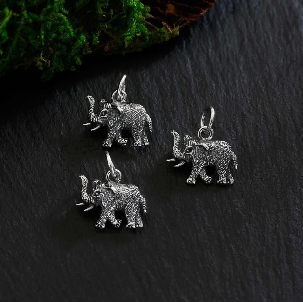 These beautifully textured sterling silver tiny elephant charms are symbols of good luck and wisdom. Elephants are magnificent beings who teach us the importance of tuning in to the herd, and using your might and muscle only as a last resort. They speak to us of gentleness, strength, devotion, and steadfastness.
