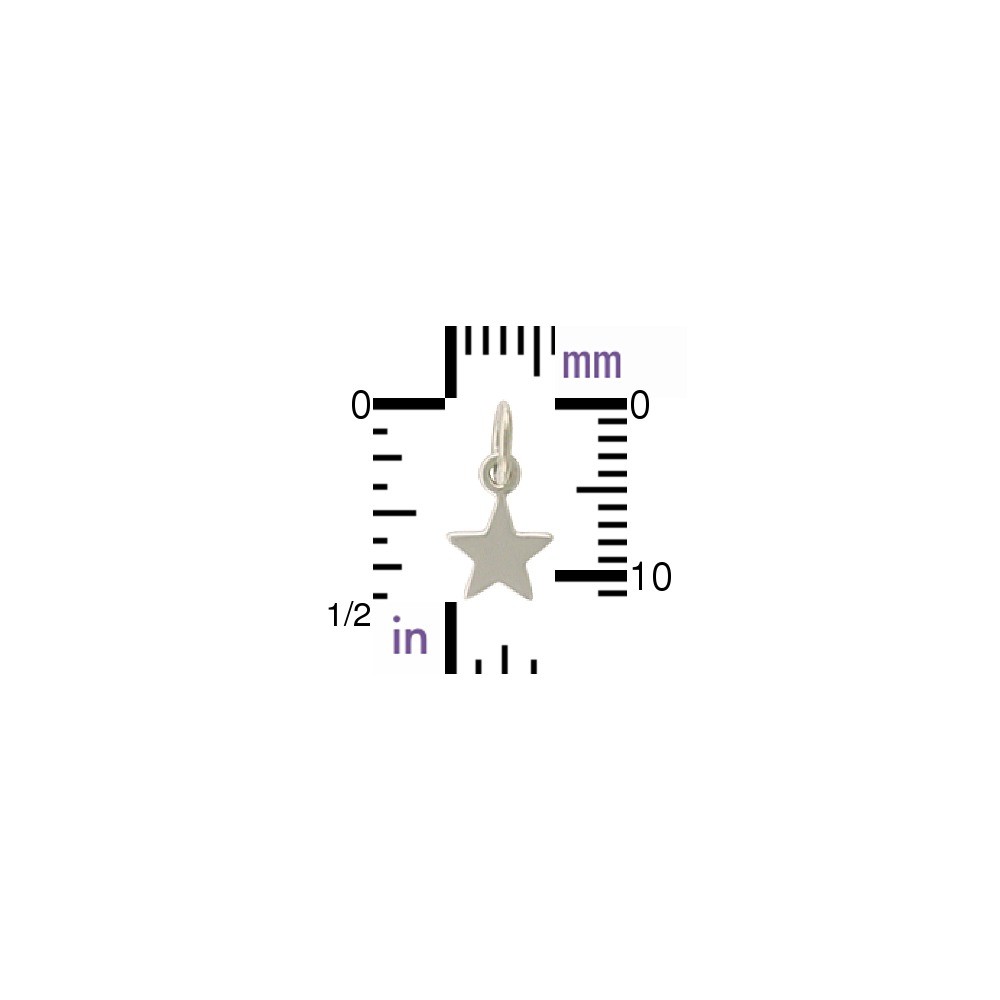 You will love this tiny sterling silver star charm! Its five points make a sparkling finishing touch to your earrings, necklaces, and bracelets. Create a simple designs by stringing this charm onto a Finished Chain or attaching a pair to Earring Findings. Or elevate your designs by creating a charm cluster from one of our many Star and Moon charms!