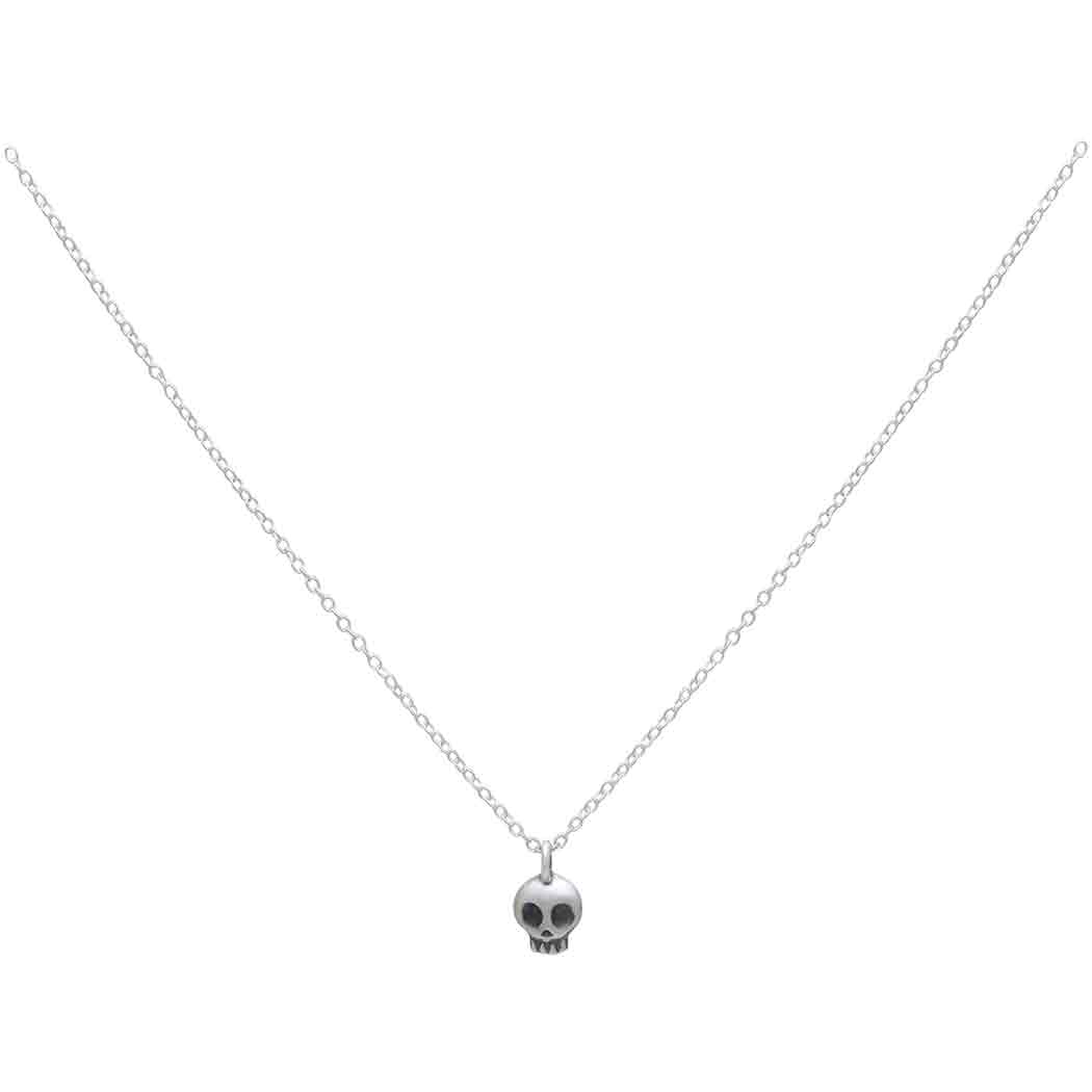 Offer this mini skull necklace to your customers as gifts reminding recipients to live life to its fullest, because, as cliche as it sounds, life is short. As a gift this tiny skull necklace may just be the start of something big. This tiny charm necklace comes on an 18 inch chain with a spring ring clasp. The charm measures 6x5mm, excluding jumprings.