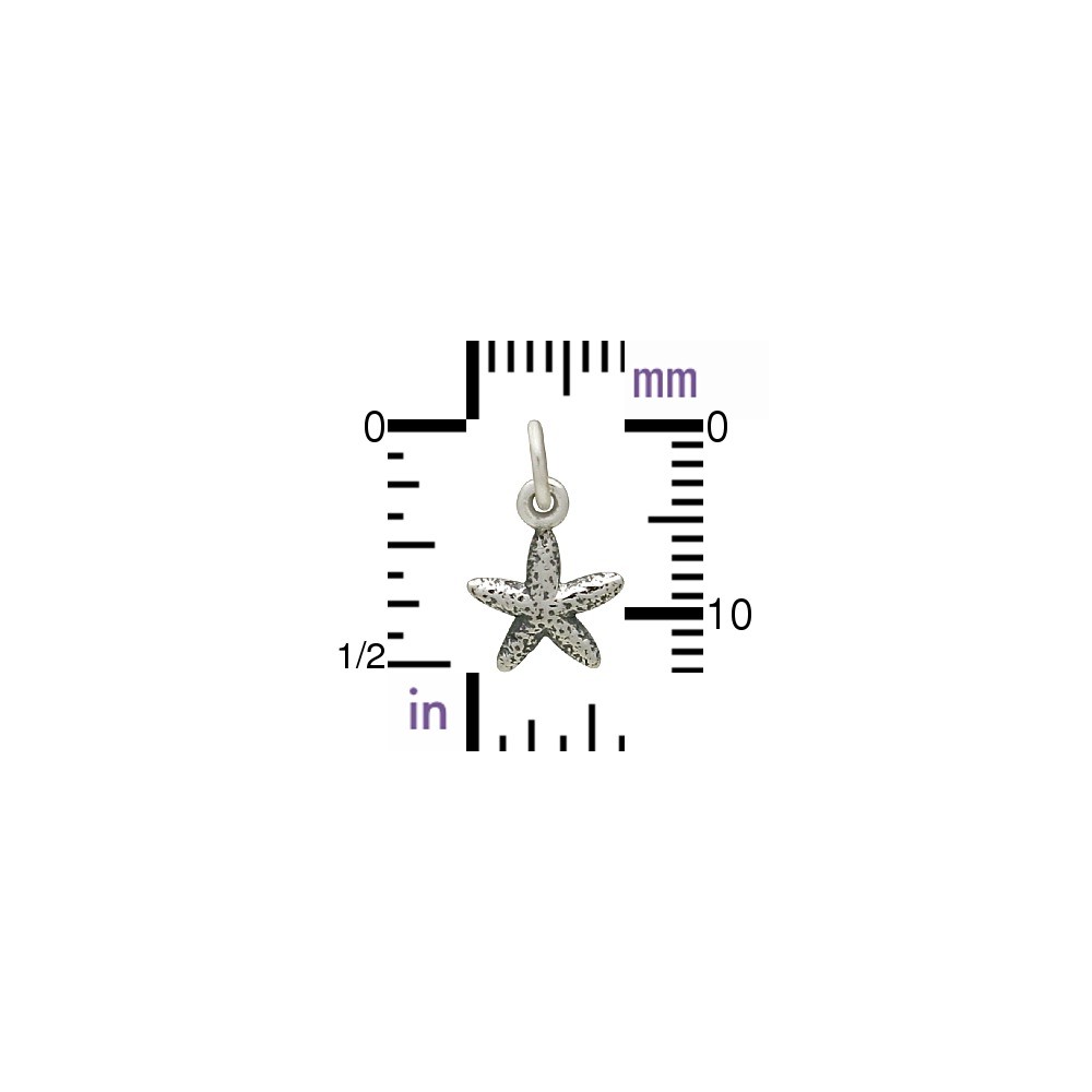 Tiny Sterling Silver Skinny Starfish Charm. A detailed and dainty starfish charm for any beachcomber or lover. Starfish come in all shapes, sizes, and colors, decorating rocks in tide pools, and coral on the ocean floor. According to legends, starfish are some of the stars that fell from the sky into the oceans. Symbolizing equality and rebirth, starfish have a remarkable ability for regeneration. If a starfish is cut in half, two starfish will grow.