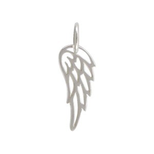 An exceptional fit for bohemian, spiritual, and everyday fine jewelry collections, this wholesale sterling silver charm shines in charm cluster necklaces, layered bracelet builds, and earring drops. Pair it with the Sterling Silver Tiny Angel Wing Solderable Charm to offer customers a solderable alternative in the same delicate wing motif. Find the full range of feather and wing designs in our Wing and Feather Charms collection. This charm sells well year round and is especially strong for Valentine's Day, memorial and sympathy gifting, and spiritual lifestyle displays.