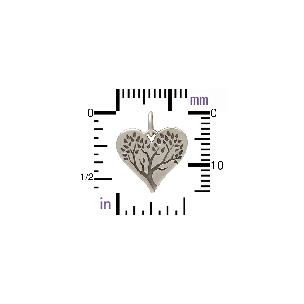 Sterling Silver Etched Tree of Life Heart Charm. This charm features an etched and oxidized finish for a dramatic, elegant look. Trees provide us with air to breathe and food to eat. Trees can also represent family with their deep roots, strong trunks, and growing branches. Because a tree embodies many symbolic qualities, they make wonderful gifts for birthdays, weddings, and baby showers. Use as a beautiful token of life in your designs, or become inspired by more tree of life charms!