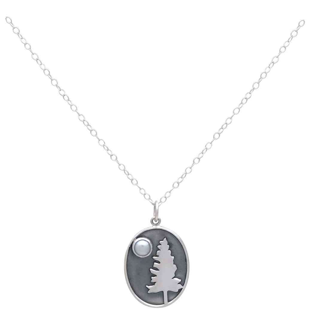 This sterling silver tree pendant with pearl moon draws you in with its stark beauty and contrast. A deeply darkened background sets off a single white pearl moon and a shiny silver lone pine. It feels like the start of a haunting fairy tale, or the end of a long day camping when night falls, and everything feels still, and the full moon rises framed by a giant sequoia, and you start to feel renewed by nature's immense beauty. Find more easy to list Finished Jewelry for your shop.