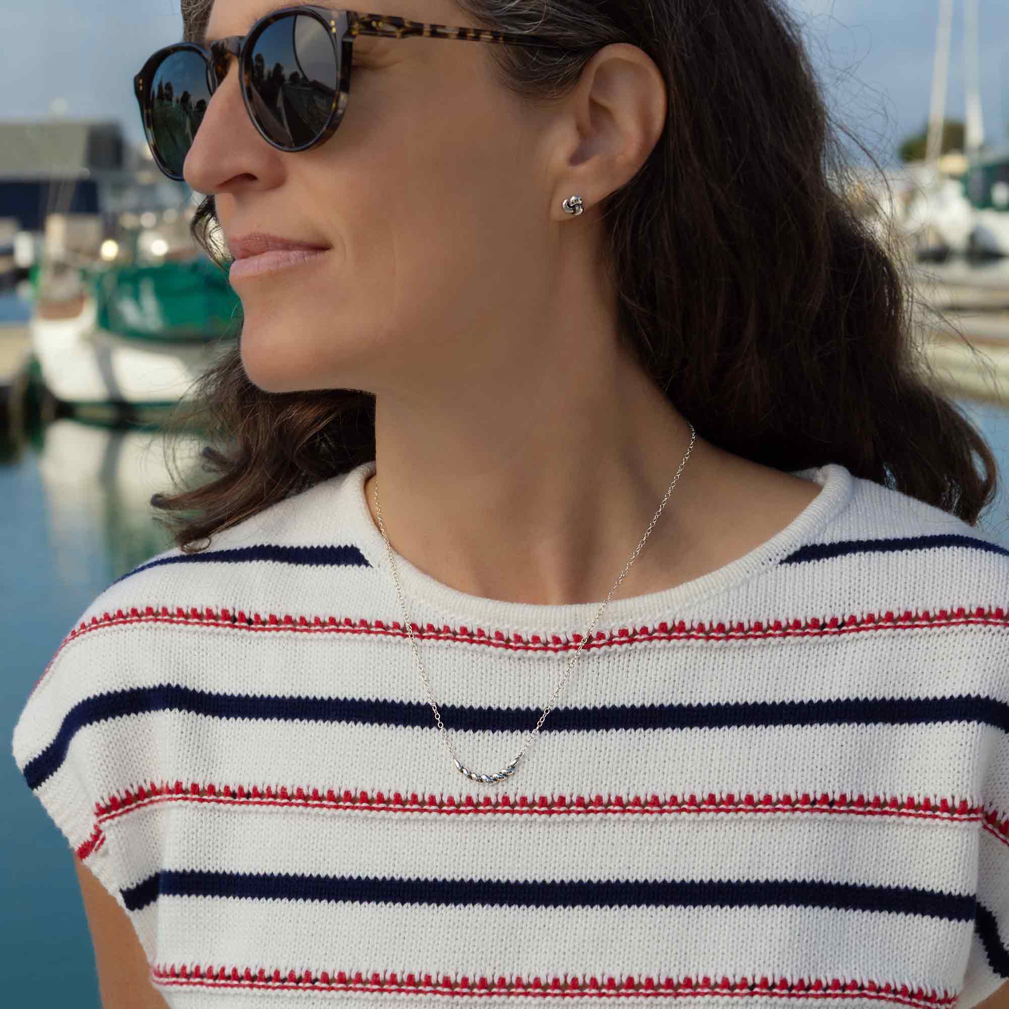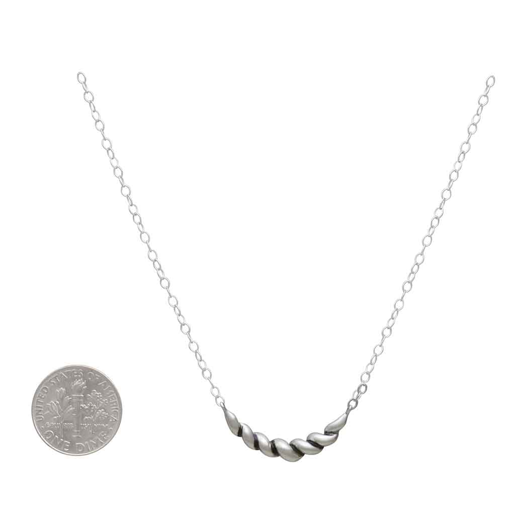 Sleek and sculptural, this sterling silver twisted tapered festoon necklace captures the beauty of movement in metal. Its softly twisting design tapers toward the center, creating a graceful curve that rests perfectly along the neckline.
