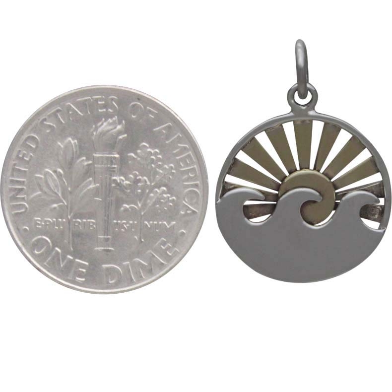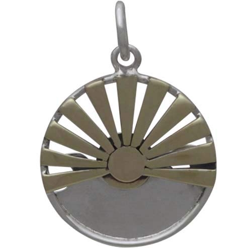 Sterling Silver Wave Pendant with Bronze Sun Rays. This handmade, mixed metals pendant is deeply satisfying - the luminous, golden rays setting over a gentle waves takes us back to lazy days spent on the beach - relaxing and picnicking without a care in the world.