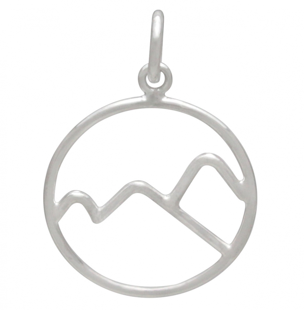 Let this nature inspired piece remind you of your favorite place to vacation, exercise, or meditate. Silver wire is hand-formed into simple and modern lines to depict a craggy mountain range. Whether you like to ski, hike, or go camping, this fun piece will help you remember that cool, fresh mountain air! Shop for more Travel inspired Charms and Pendants.