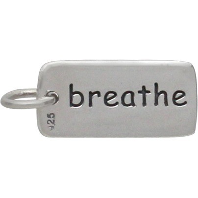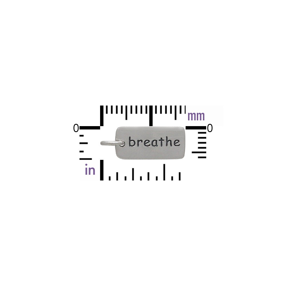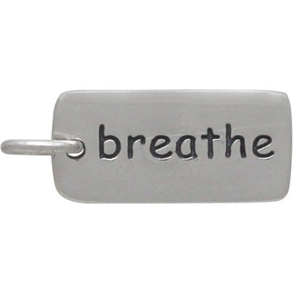 Breathe - Sterling Silver Word Tag. A vertically hanging word charm with "breathe" on both sides. To see all our rectangle word charms on one page and use the Express Order Form, Click here to see all word charms..