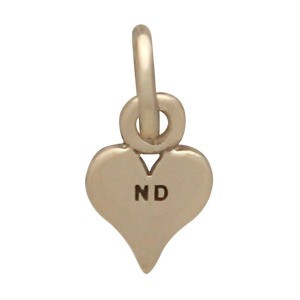 This tiny bronze heart charm is a small token of love makes an adorable gift for a mother, best friend charms, or for someone wanting to express their feelings for a loved one. The charm has enough space for stamping an initial onto it for an even more personalized gift! Complete a necklace by stringing it onto any of our finished chains. Or create a charm cluster mixing other charms from our Heart or Love Charm Collections. Length measurement includes the 5mm soldered jump ring. Sold as a set of two sized hearts here.